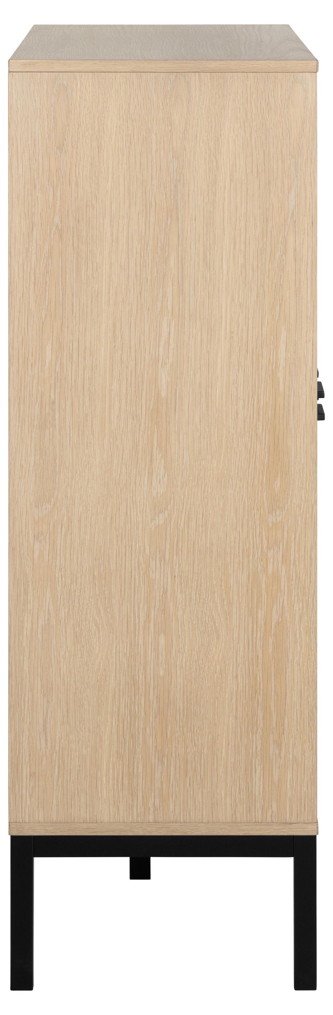 Questo mobile di grande impatto invita a un'energia rinfrescante negli interni. Grazie al suo aspetto contrastante, ottenuto fondendo l'impiallacciatura in rovere oliato pigmentato bianco e l'impiallacciatura in rovere laccato nero, il mobile esalta la dinamica dell'ambiente. È progettato con 6 ripiani regolabili che si nascondono dietro 4 ante ornate da lamelle decorative.