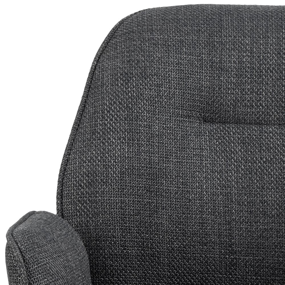 Sedia da pranzo Aura con braccioli, tessuto Basel grigio scuro 19, base a 4 razze in acciaio ruvido nero opaco verniciato a polvere, con girevole e cerniera