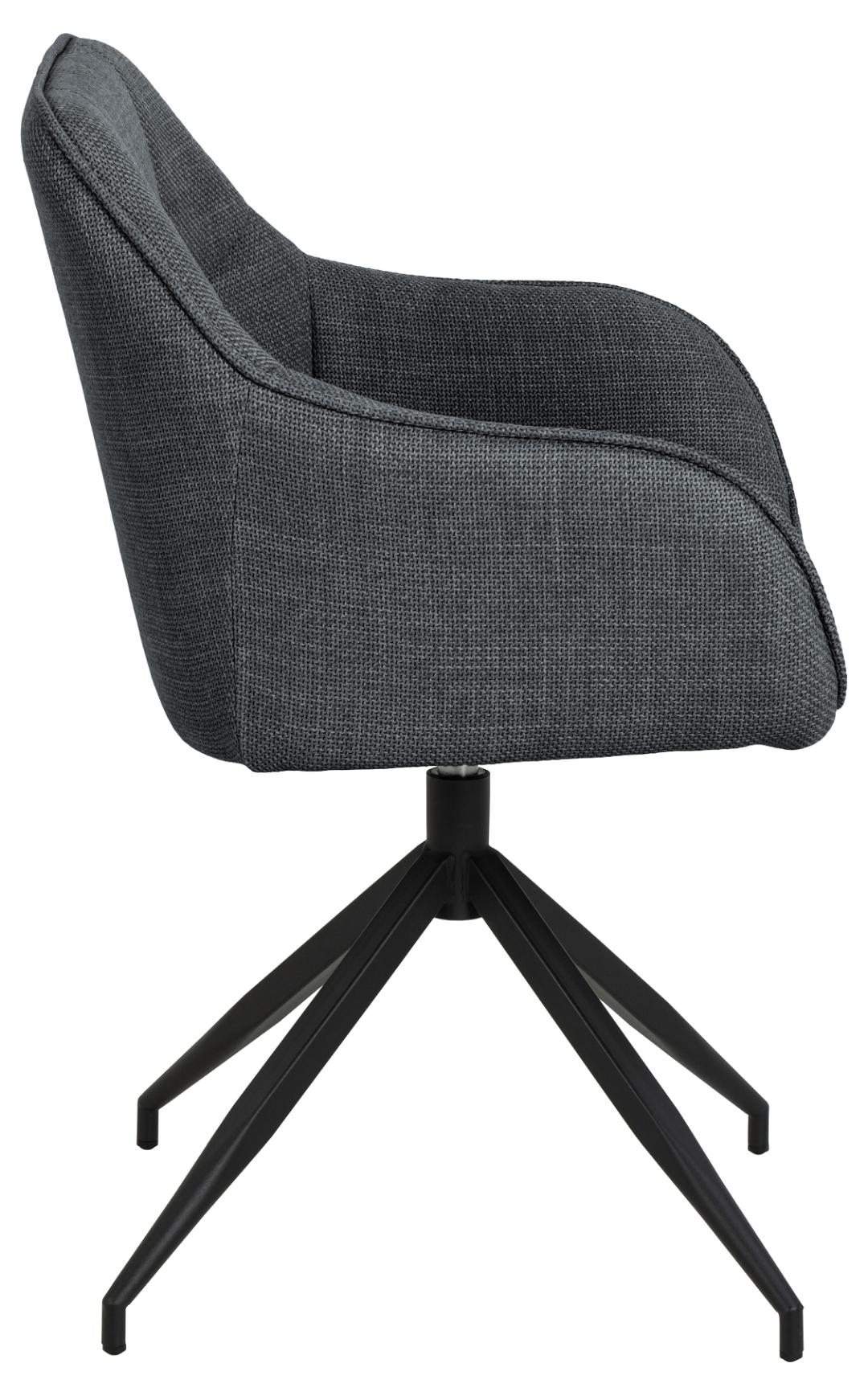 Sedia da pranzo Brenda con braccioli, tessuto Basel grigio scuro 19, base a 4 razze in acciaio ruvido nero opaco verniciato a polvere, con cuciture quadrate e girevole