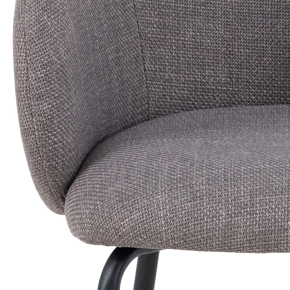 Sedia da pranzo Eleanor con braccioli, grigio chiaro-marrone Basilea, base in acciaio grezzo nero opaco verniciato a polvere, con bottoni01 e cerniera, confezione 2 pezzi