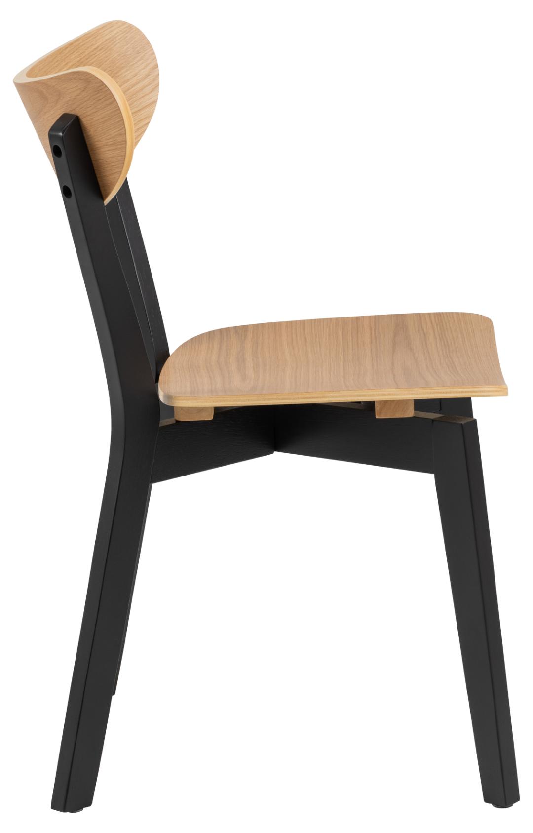 Sedia da pranzo Roxby, impiallacciatura in rovere laccato AC, base in legno di gomma laccato nero opaco AC, minimo ordinabile 2 pezzi