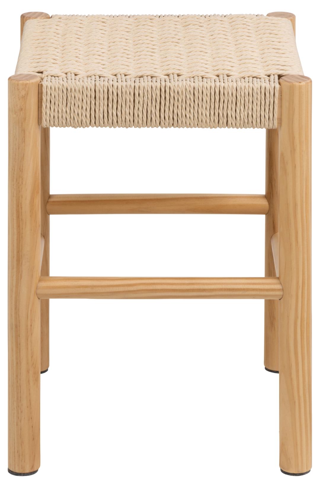 Sgabello Alvin, trecce di carta bianco sporco, base in pino laccato NC, con motivo a intreccio, 35x35x45 cm