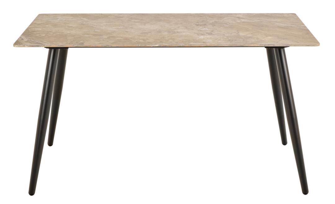 Tavolo da pranzo rettangolare Wicklow, piano in ceramica lucida marrone Aberta, base in acciaio grezzo nero opaco verniciato a polvere, 140x80x75 cm